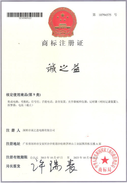 誠(chéng)之益商標(biāo)中文證書(shū)