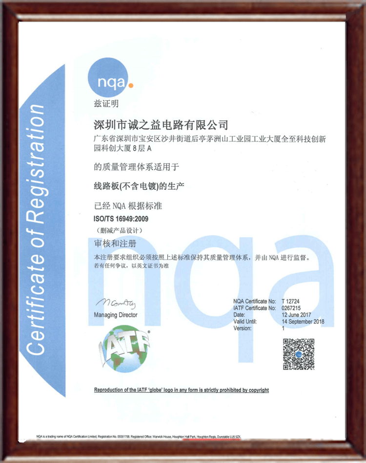 深圳誠(chéng)之益電路NQA資質(zhì)證書(shū)